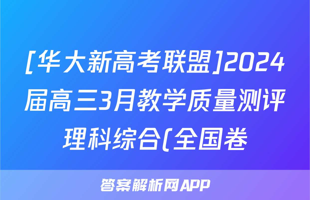 [华大新高考联盟]2024届高三3月教学质量测评理科综合(全国卷)试题正在持续更新,目前2026届黄冈八模答案网为大家整理了相关试题及答案,供大家查缺补漏,高效提升成绩。
