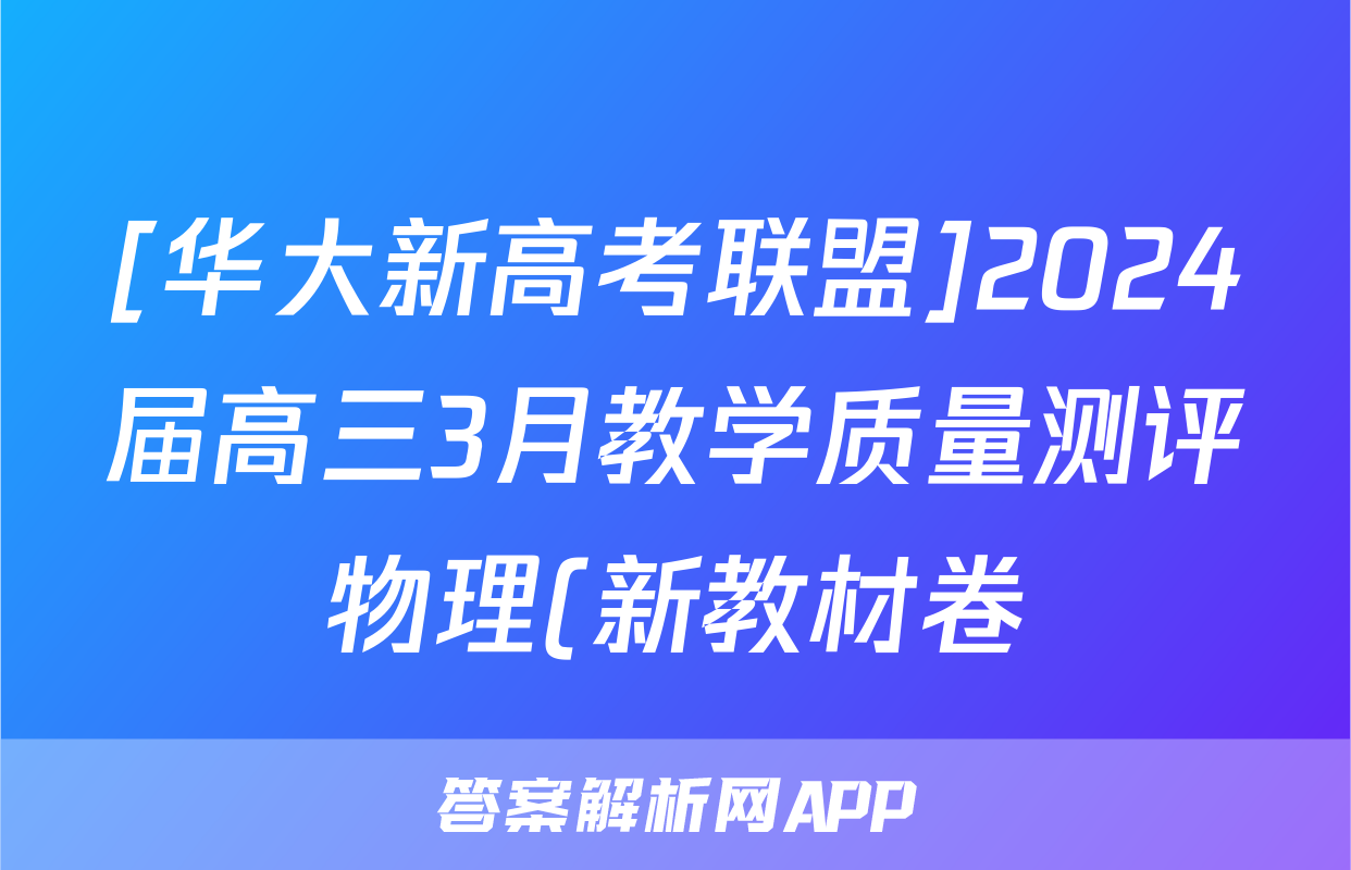 [华大新高考联盟]2024届高三3月教学质量测评物理(新教材卷)答案正在持续更新,目前2026届黄冈八模答案网为大家整理了相关试题及答案,供大家查缺补漏,高效提升成绩。