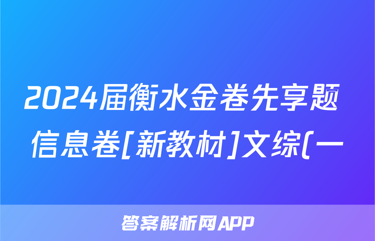 3、2024届衡水金卷先享题[信息卷](一)1文综(新教材)试题