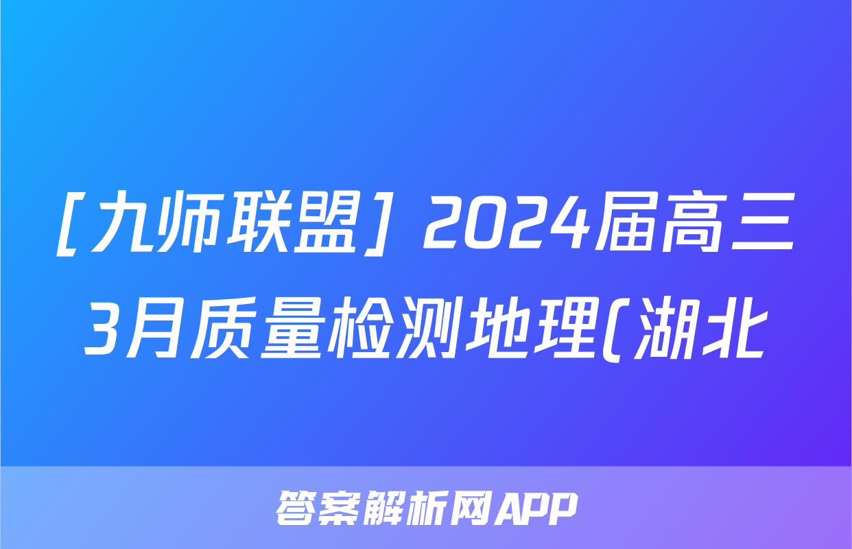 [九师联盟] 2024届高三3月质量检测地理(湖北)试题正在持续更新,目前2026届黄冈八模答案网为大家整理了相关试题及答案,供大家查缺补漏,高效提升成绩。