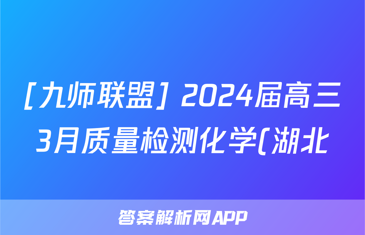 [九师联盟] 2024届高三3月质量检测化学(湖北)答案正在持续更新,目前2026届黄冈八模答案网为大家整理了相关试题及答案,供大家查缺补漏,高效提升成绩。