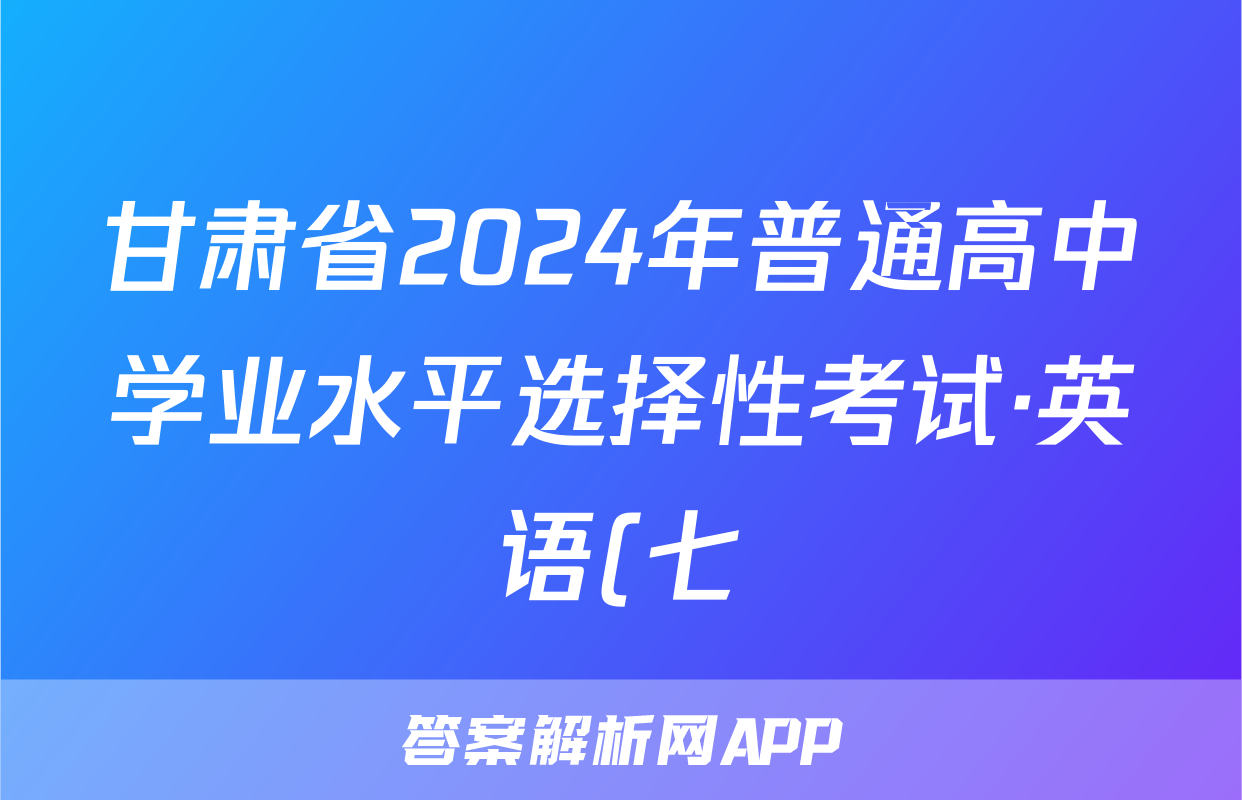 甘肃省2024年普通高中学业水平选择性考试·英语(七)7[24·(新高考)ZX·MNJ·英语·GS]试题正在持续更新,目前2026届黄冈八模答案网为大家整理了相关试题及答案,供大家查缺补漏,高效提升成绩。