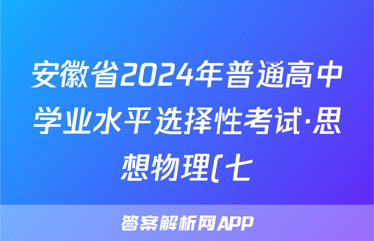 安徽省2024年普通高中学业水平选择性考试·思想物理(七)7[24·(新高考)ZX·MNJ·思想物理·AH]试题正在持续更新,目前2026届黄冈八模答案网为大家整理了相关试题及答案,供大家查缺补漏,高效提升成绩。