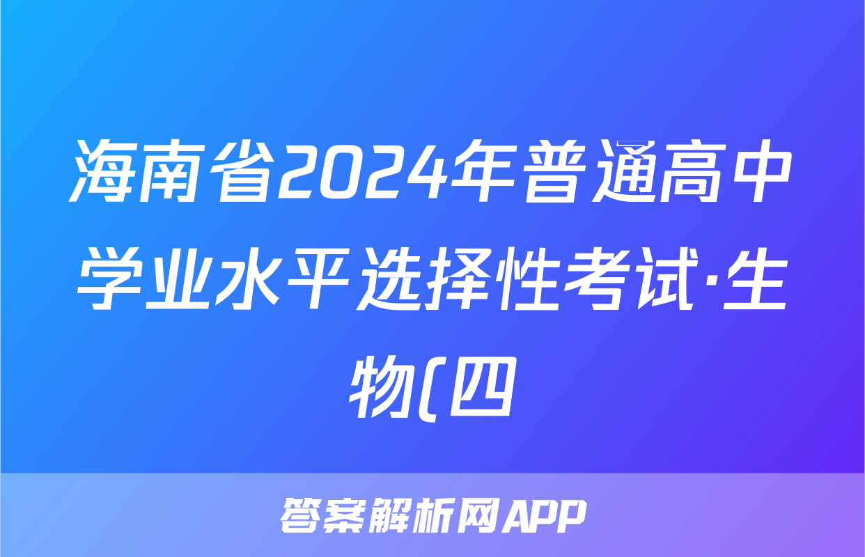 海南省2024年普通高中学业水平选择性考试·生物(四)4[24·(新高考)ZX·MNJ·生物·HAIN]答案正在持续更新,目前2026届黄冈八模答案网为大家整理了相关试题及答案,供大家查缺补漏,高效提升成绩。
