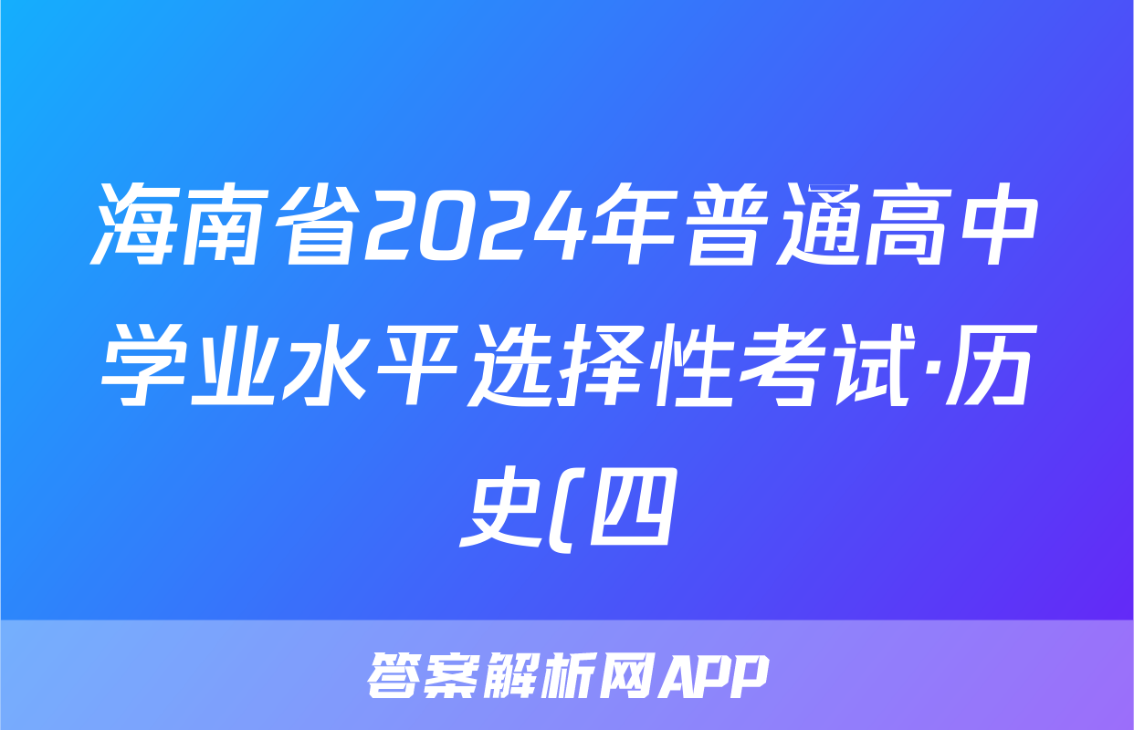 海南省2024年普通高中学业水平选择性考试·历史(四)4[24·(新高考)ZX·MNJ·历史·HAIN]答案正在持续更新,目前2026届黄冈八模答案网为大家整理了相关试题及答案,供大家查缺补漏,高效提升成绩。