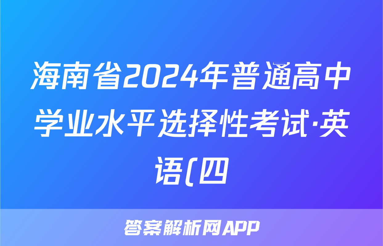 海南省2024年普通高中学业水平选择性考试·英语(四)4[24·(新高考)ZX·MNJ·英语·HAIN]试题正在持续更新,目前2026届黄冈八模答案网为大家整理了相关试题及答案,供大家查缺补漏,高效提升成绩。
