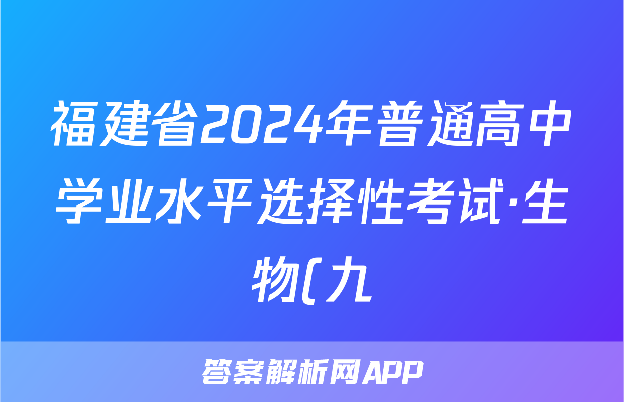 福建省2024年普通高中学业水平选择性考试·生物(九)9[24·(新高考)ZX·MNJ·生物·FJ]试题正在持续更新,目前2026届黄冈八模答案网为大家整理了相关试题及答案,供大家查缺补漏,高效提升成绩。