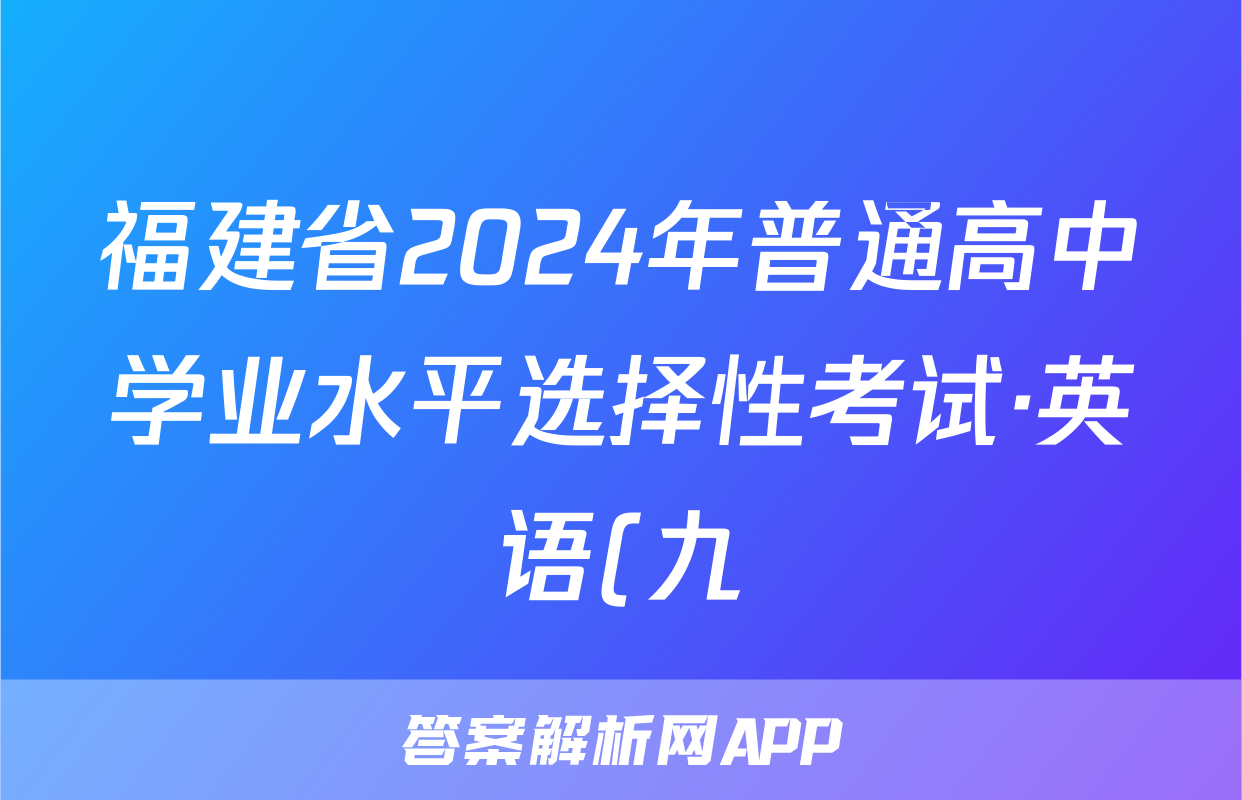 福建省2024年普通高中学业水平选择性考试·英语(九)9[24·(新高考)ZX·MNJ·英语·FJ]试题正在持续更新,目前2026届黄冈八模答案网为大家整理了相关试题及答案,供大家查缺补漏,高效提升成绩。