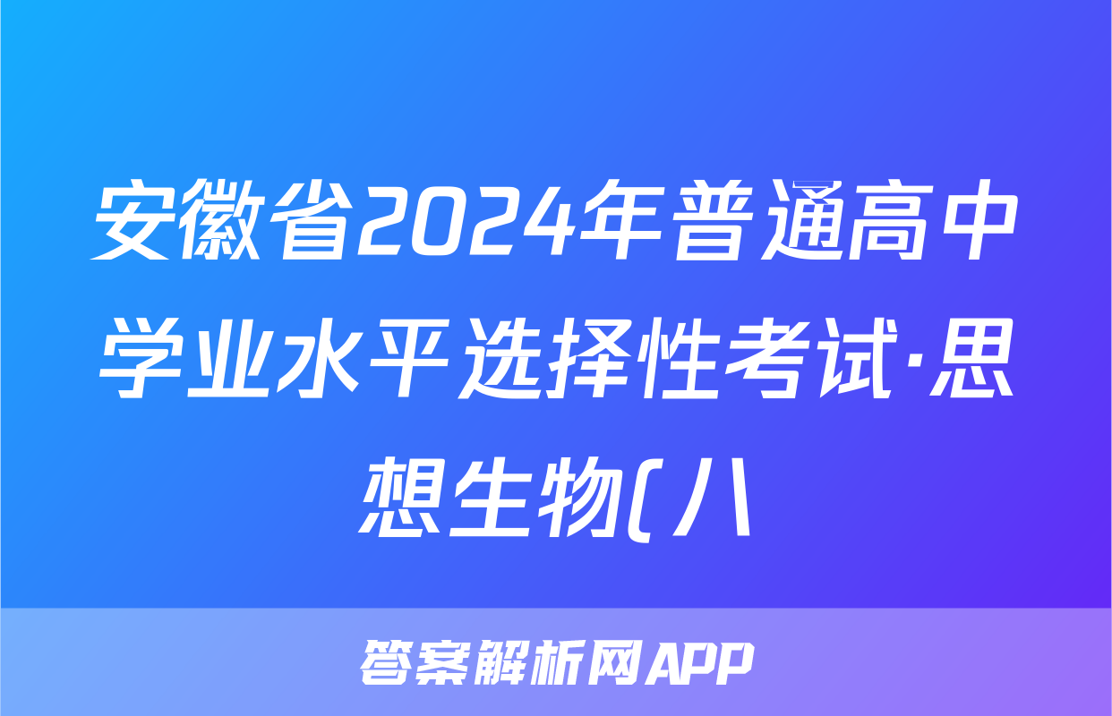 安徽省2024年普通高中学业水平选择性考试·思想生物(八)8[24·(新高考)ZX·MNJ·思想生物·AH]试题正在持续更新,目前2026届黄冈八模答案网为大家整理了相关试题及答案,供大家查缺补漏,高效提升成绩。