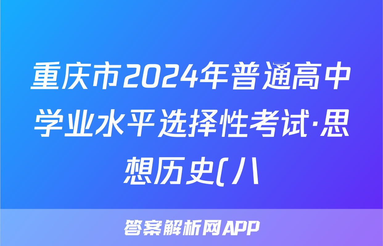 重庆市2024年普通高中学业水平选择性考试·思想历史(八)8[24·(新高考)ZX·MNJ·思想历史·CQ]试题正在持续更新,目前2026届黄冈八模答案网为大家整理了相关试题及答案,供大家查缺补漏,高效提升成绩。