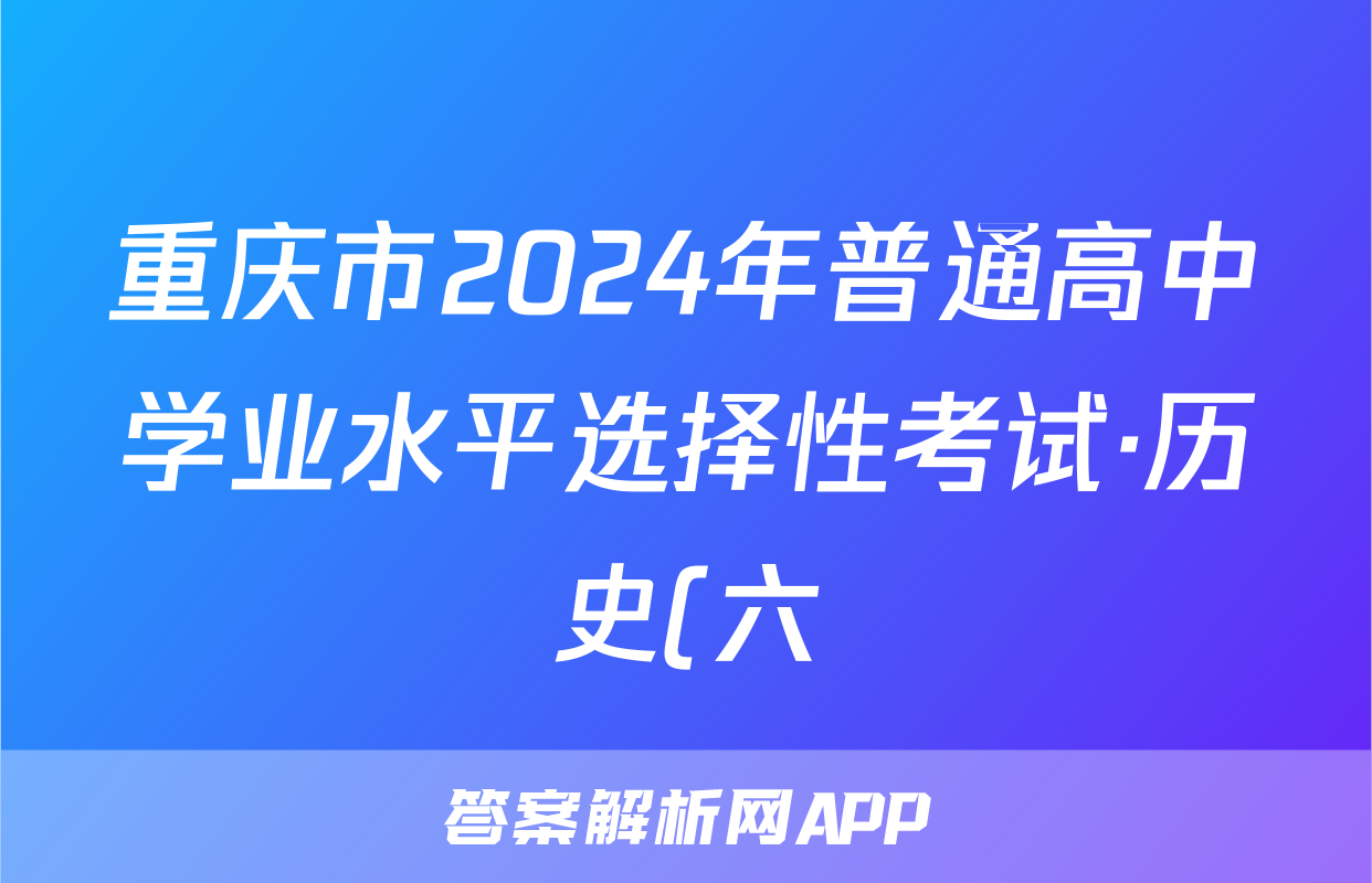 重庆市2024年普通高中学业水平选择性考试·历史(六)6[24·(新高考)ZX·MNJ·历史·CQ]答案正在持续更新,目前2026届黄冈八模答案网为大家整理了相关试题及答案,供大家查缺补漏,高效提升成绩。