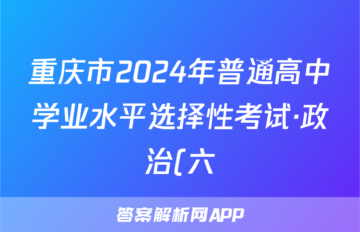 重庆市2024年普通高中学业水平选择性考试·政治(六)6[24·(新高考)ZX·MNJ·政治·CQ]答案正在持续更新,目前2026届黄冈八模答案网为大家整理了相关试题及答案,供大家查缺补漏,高效提升成绩。