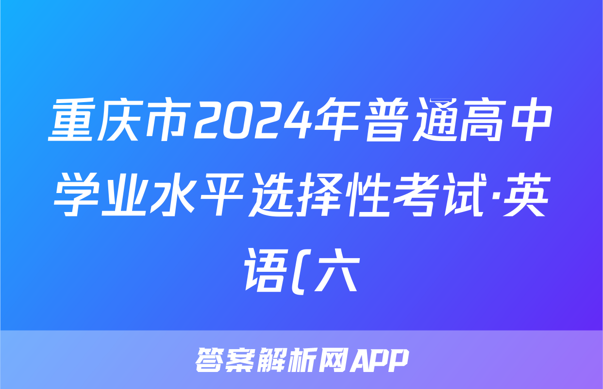 重庆市2024年普通高中学业水平选择性考试·英语(六)6[24·(新高考)ZX·MNJ·英语·CQ]答案正在持续更新,目前2026届黄冈八模答案网为大家整理了相关试题及答案,供大家查缺补漏,高效提升成绩。