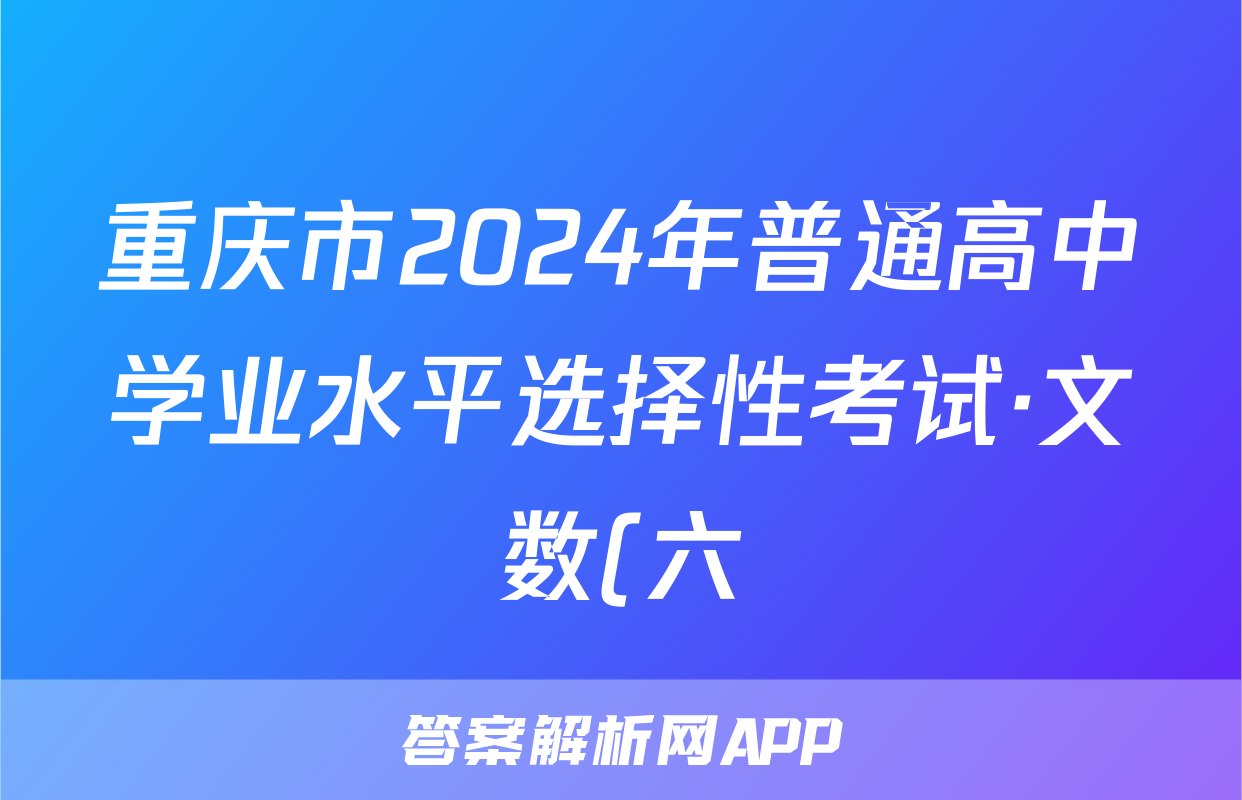 重庆市2024年普通高中学业水平选择性考试·文数(六)6[24·(新高考)ZX·MNJ·文数·CQ]答案正在持续更新,目前2026届黄冈八模答案网为大家整理了相关试题及答案,供大家查缺补漏,高效提升成绩。