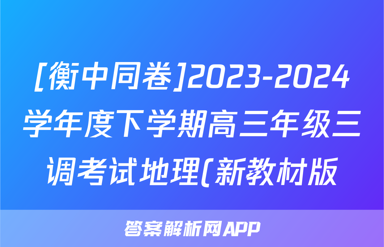 [衡中同卷]2023-2024学年度下学期高三年级三调考试地理(新教材版)试题正在持续更新,目前2026届黄冈八模答案网为大家整理了相关试题及答案,供大家查缺补漏,高效提升成绩。