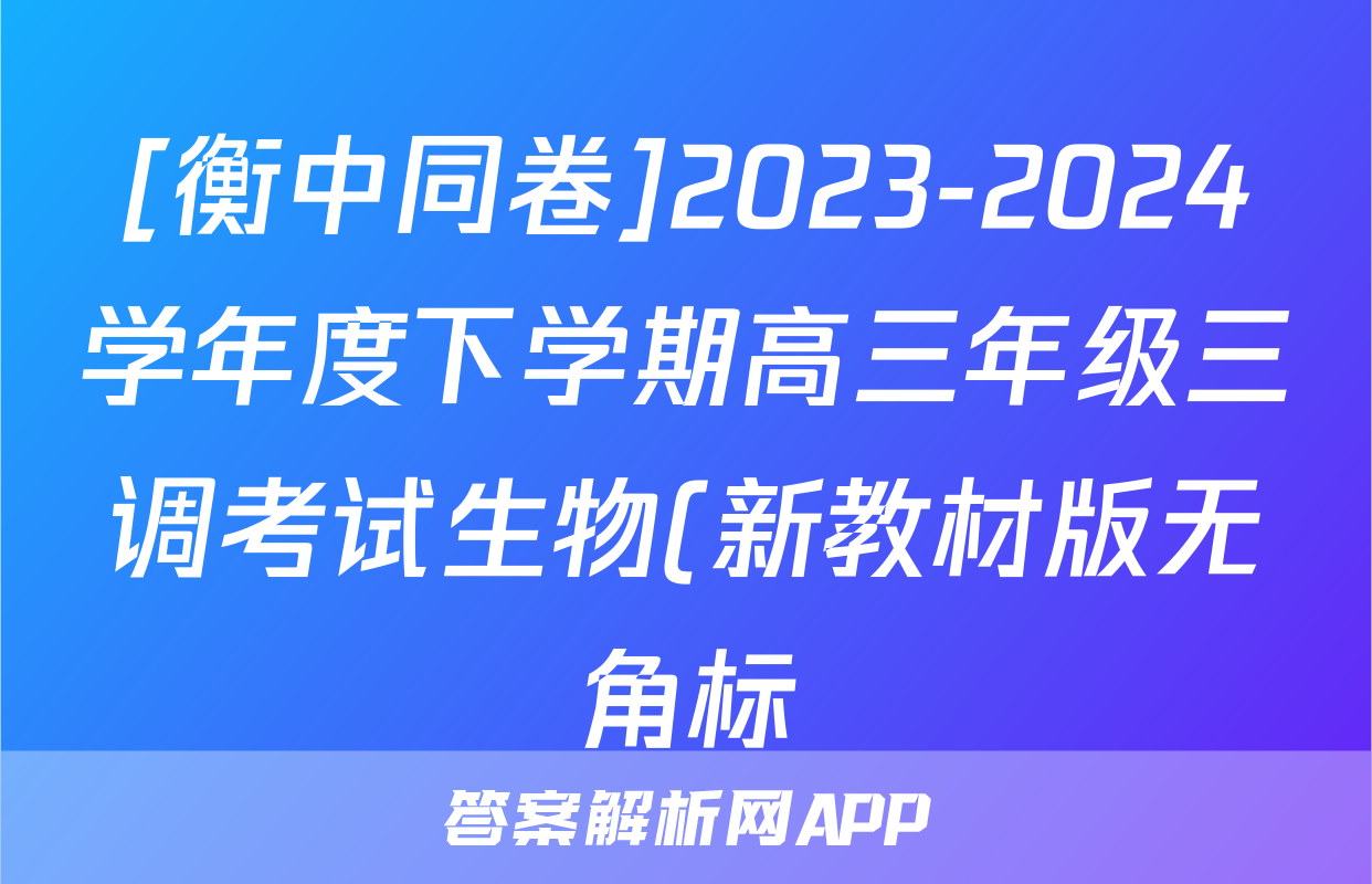 [衡中同卷]2023-2024学年度下学期高三年级三调考试生物(新教材版无角标)答案正在持续更新,目前2026届黄冈八模答案网为大家整理了相关试题及答案,供大家查缺补漏,高效提升成绩。