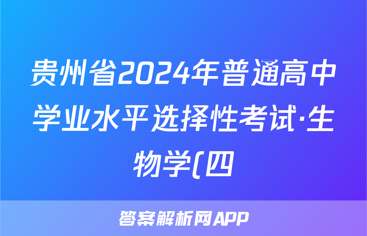 贵州省2024年普通高中学业水平选择性考试·生物学(四)4[24·(新高考)ZX·MNJ·生物学·GZ]答案正在持续更新,目前2026届黄冈八模答案网为大家整理了相关试题及答案,供大家查缺补漏,高效提升成绩。