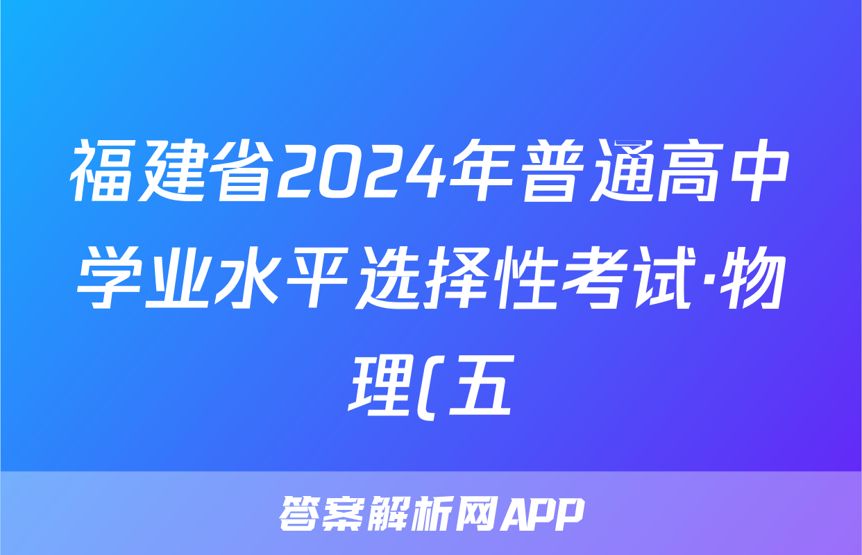 福建省2024年普通高中学业水平选择性考试·物理(五)5[24·(新高考)ZX·MNJ·物理·FJ]试题正在持续更新,目前2026届黄冈八模答案网为大家整理了相关试题及答案,供大家查缺补漏,高效提升成绩。