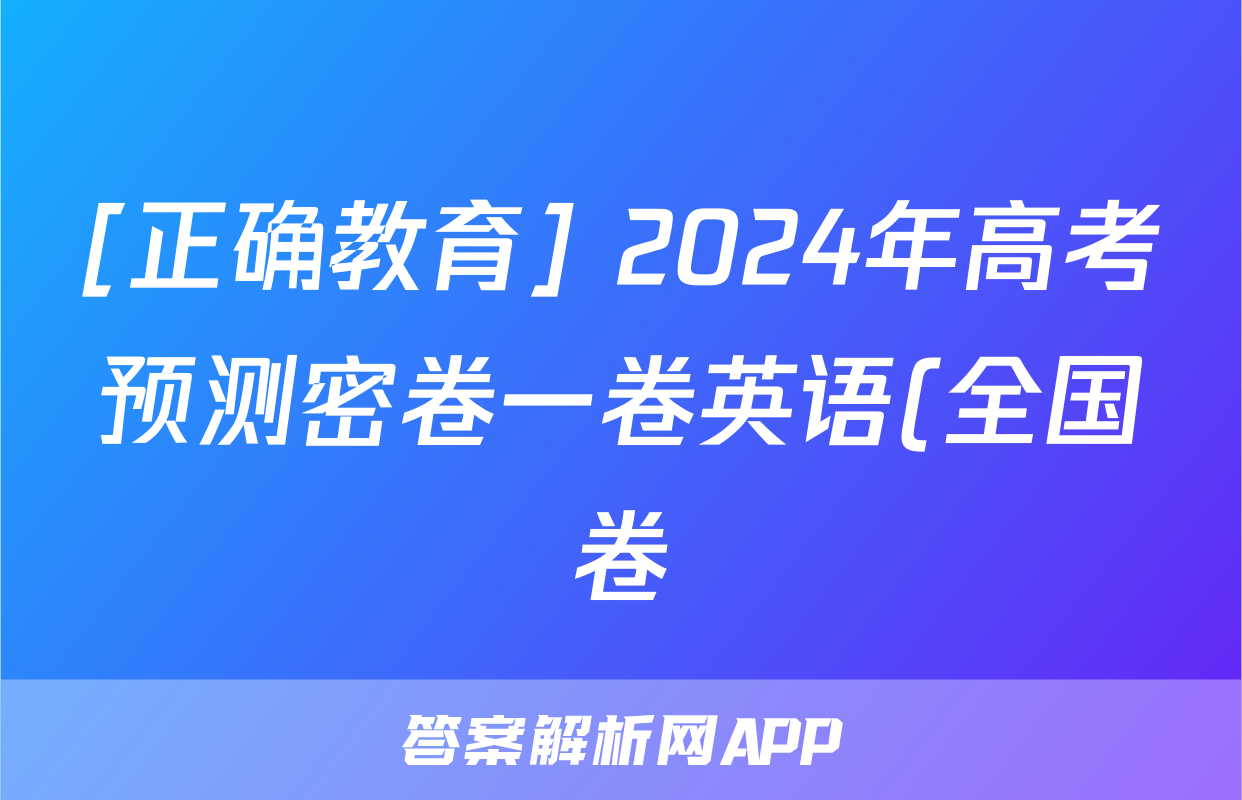 [正确教育] 2024年高考预测密卷一卷英语(全国卷)答案正在持续更新,目前2026届黄冈八模答案网为大家整理了相关试题及答案,供大家查缺补漏,高效提升成绩。