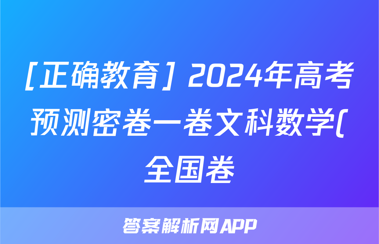 [正确教育] 2024年高考预测密卷一卷文科数学(全国卷)答案正在持续更新,目前2026届黄冈八模答案网为大家整理了相关试题及答案,供大家查缺补漏,高效提升成绩。