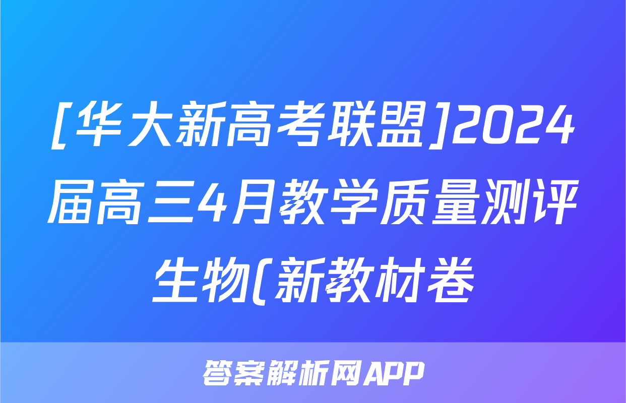 [华大新高考联盟]2024届高三4月教学质量测评生物(新教材卷)答案正在持续更新,目前2026届黄冈八模答案网为大家整理了相关试题及答案,供大家查缺补漏,高效提升成绩。