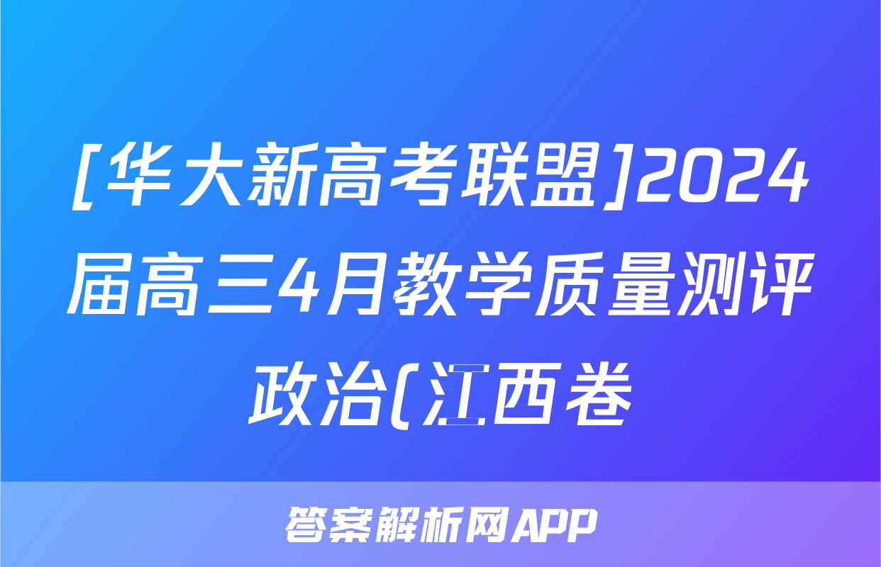 [华大新高考联盟]2024届高三4月教学质量测评政治(江西卷)试题正在持续更新,目前2026届黄冈八模答案网为大家整理了相关试题及答案,供大家查缺补漏,高效提升成绩。