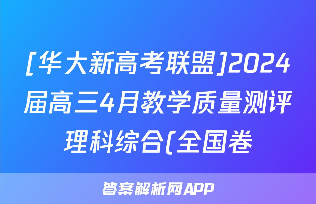 [华大新高考联盟]2024届高三4月教学质量测评理科综合(全国卷)答案正在持续更新,目前2026届黄冈八模答案网为大家整理了相关试题及答案,供大家查缺补漏,高效提升成绩。