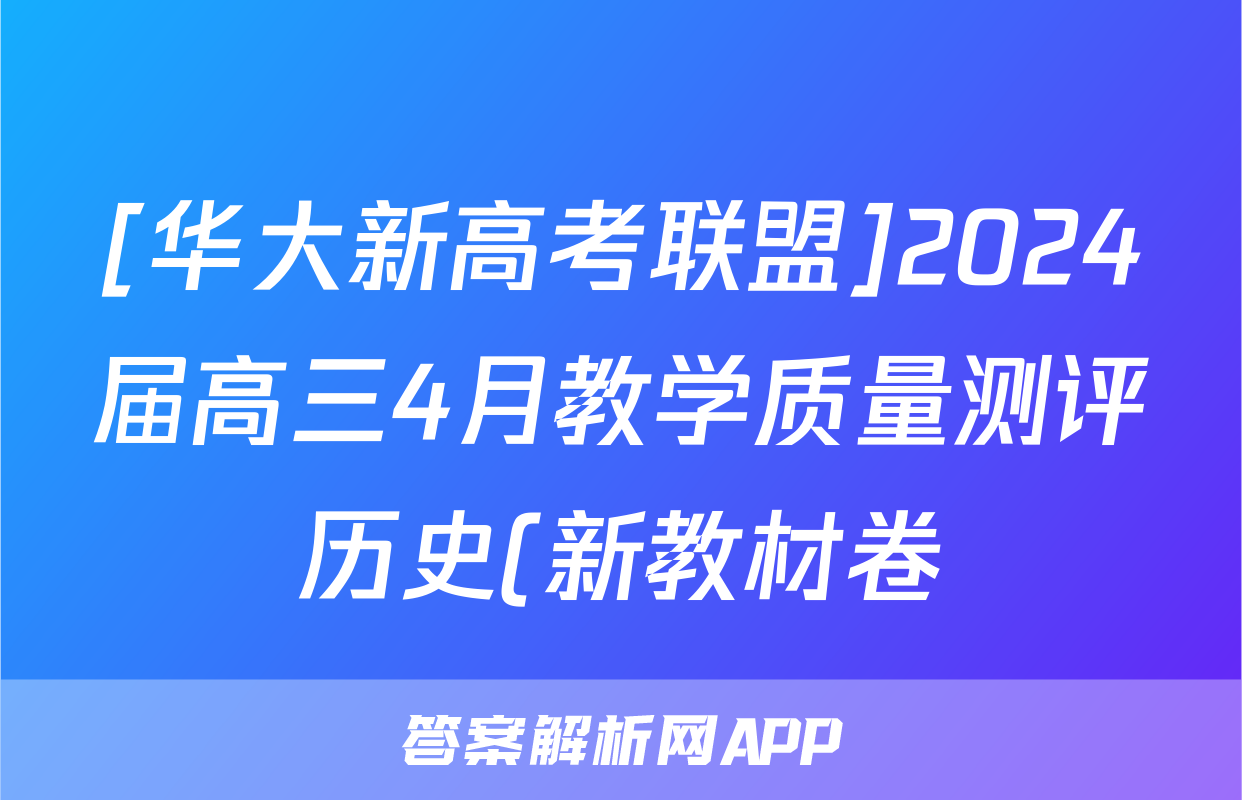 [华大新高考联盟]2024届高三4月教学质量测评历史(新教材卷)答案正在持续更新,目前2026届黄冈八模答案网为大家整理了相关试题及答案,供大家查缺补漏,高效提升成绩。