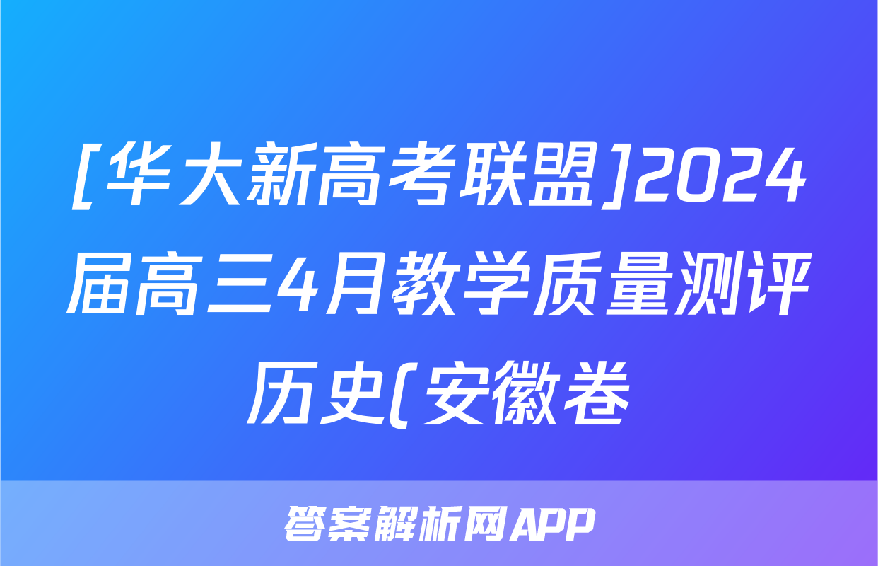 [华大新高考联盟]2024届高三4月教学质量测评历史(安徽卷)答案正在持续更新,目前2026届黄冈八模答案网为大家整理了相关试题及答案,供大家查缺补漏,高效提升成绩。
