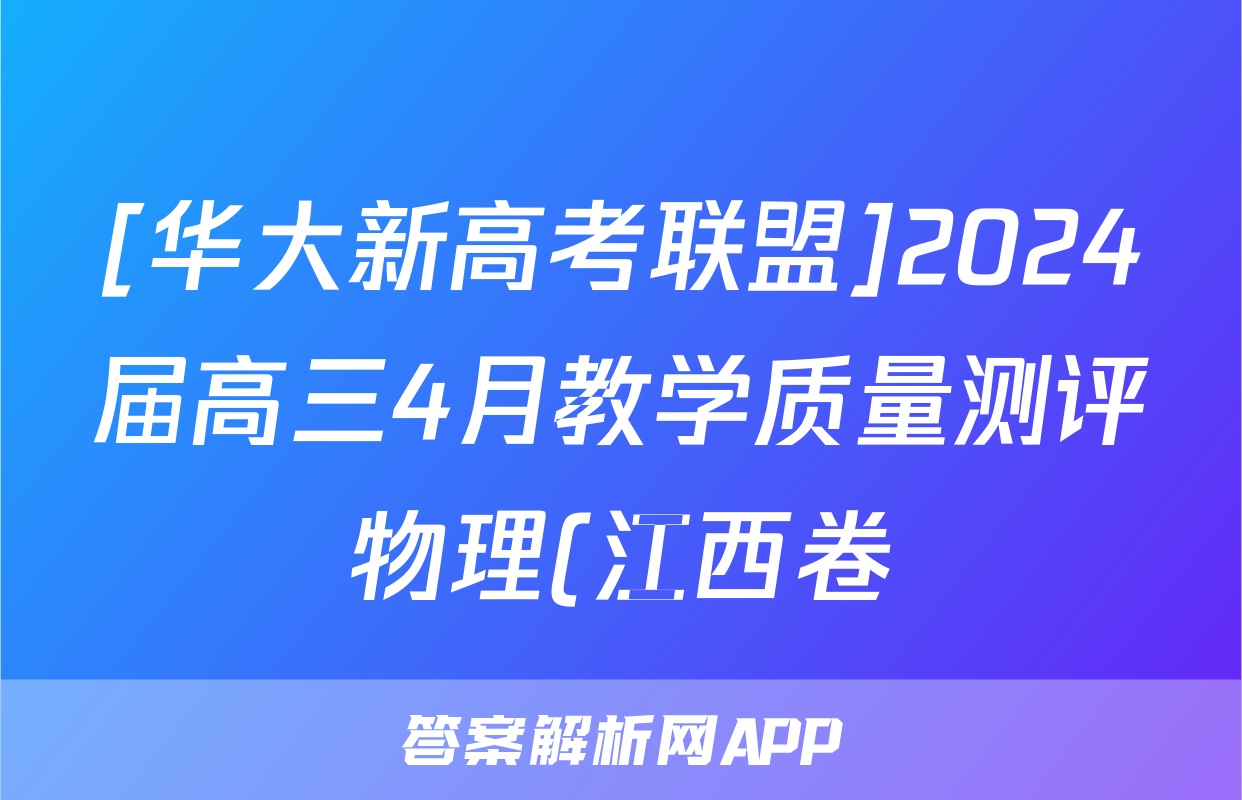[华大新高考联盟]2024届高三4月教学质量测评物理(江西卷)试题正在持续更新,目前2026届黄冈八模答案网为大家整理了相关试题及答案,供大家查缺补漏,高效提升成绩。