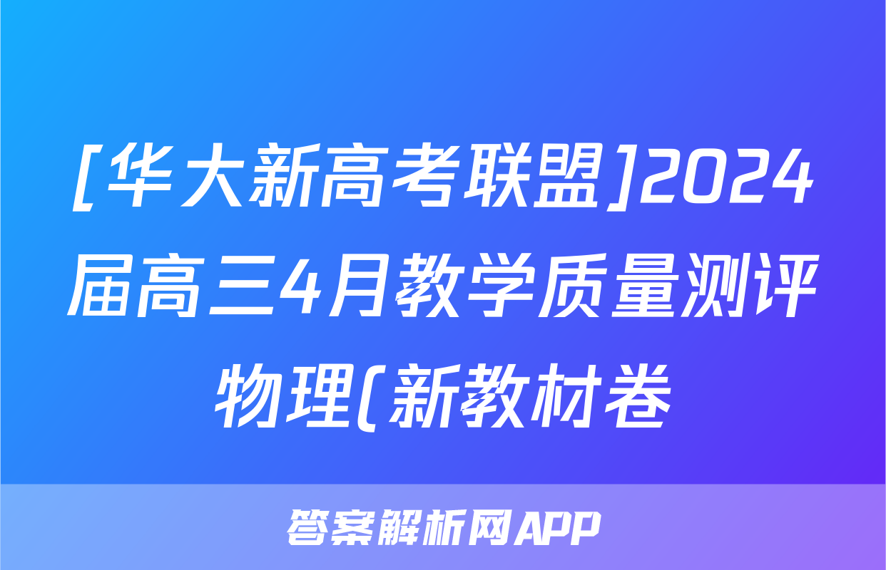 [华大新高考联盟]2024届高三4月教学质量测评物理(新教材卷)试题正在持续更新,目前2026届黄冈八模答案网为大家整理了相关试题及答案,供大家查缺补漏,高效提升成绩。