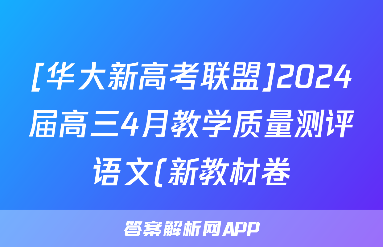 [华大新高考联盟]2024届高三4月教学质量测评语文(新教材卷)试题正在持续更新,目前2026届黄冈八模答案网为大家整理了相关试题及答案,供大家查缺补漏,高效提升成绩。
