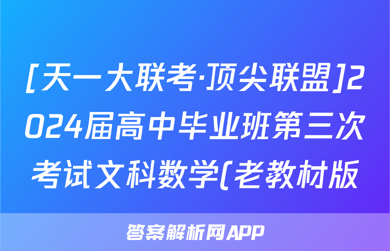 [天一大联考·顶尖联盟]2024届高中毕业班第三次考试文科数学(老教材版)试题正在持续更新,目前2026届黄冈八模答案网为大家整理了相关试题及答案,供大家查缺补漏,高效提升成绩。