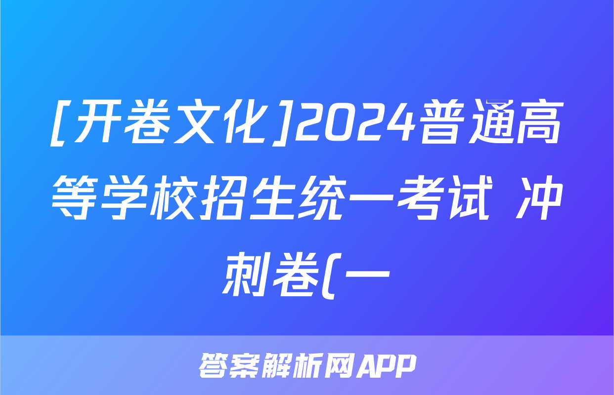 [开卷文化]2024普通高等学校招生统一考试 冲刺卷(一)1数学(新教材)答案正在持续更新,目前2026届黄冈八模答案网为大家整理了相关试题及答案,供大家查缺补漏,高效提升成绩。