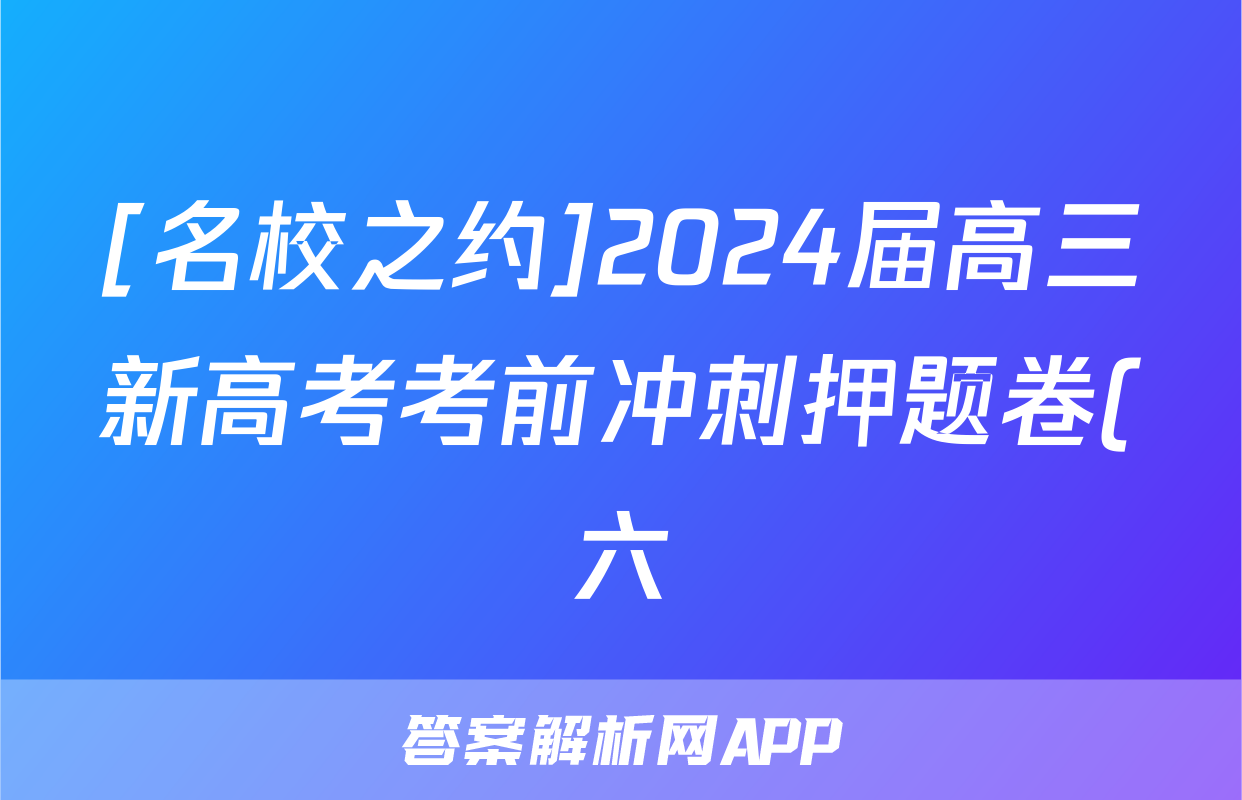 [名校之约]2024届高三新高考考前冲刺押题卷(六)6化学答案正在持续更新,目前2026届黄冈八模答案网为大家整理了相关试题及答案,供大家查缺补漏,高效提升成绩。