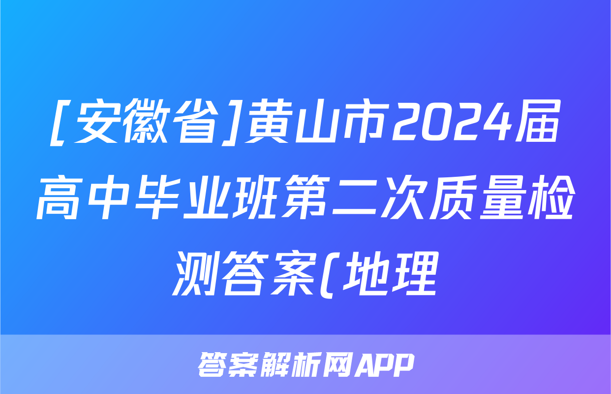 [安徽省]黄山市2024届高中毕业班第二次质量检测答案(地理)正在持续更新,目前2026届黄冈八模答案网为大家整理了相关试题及答案,供大家查缺补漏,高效提升成绩。