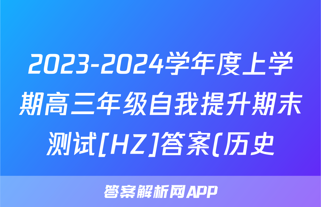 2023-2024学年度上学期高三年级自我提升期末测试[HZ]答案(历史)正在持续更新,目前2026届黄冈八模答案网为大家整理了相关试题及答案,供大家查缺补漏,高效提升成绩。