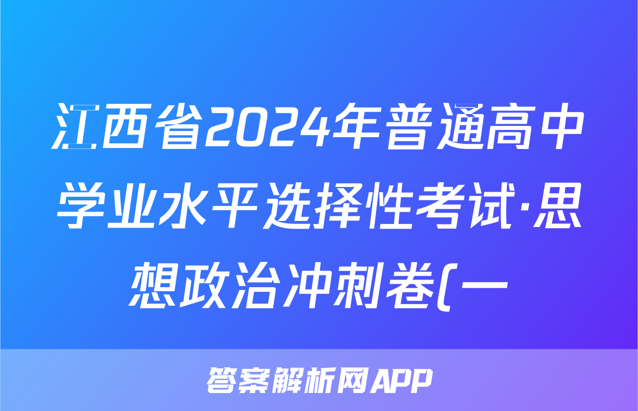 江西省2024年普通高中学业水平选择性考试·思想政治冲刺卷(一)1[24·(新高考)CCJ·思想政治·JX]答案正在持续更新,目前2026届黄冈八模答案网为大家整理了相关试题及答案,供大家查缺补漏,高效提升成绩。