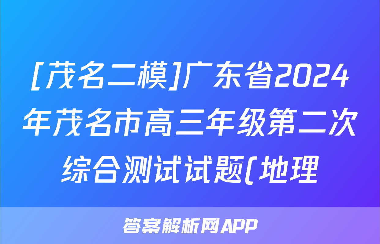 [茂名二模]广东省2024年茂名市高三年级第二次综合测试试题(地理)正在持续更新,目前2026届黄冈八模答案网为大家整理了相关试题及答案,供大家查缺补漏,高效提升成绩。