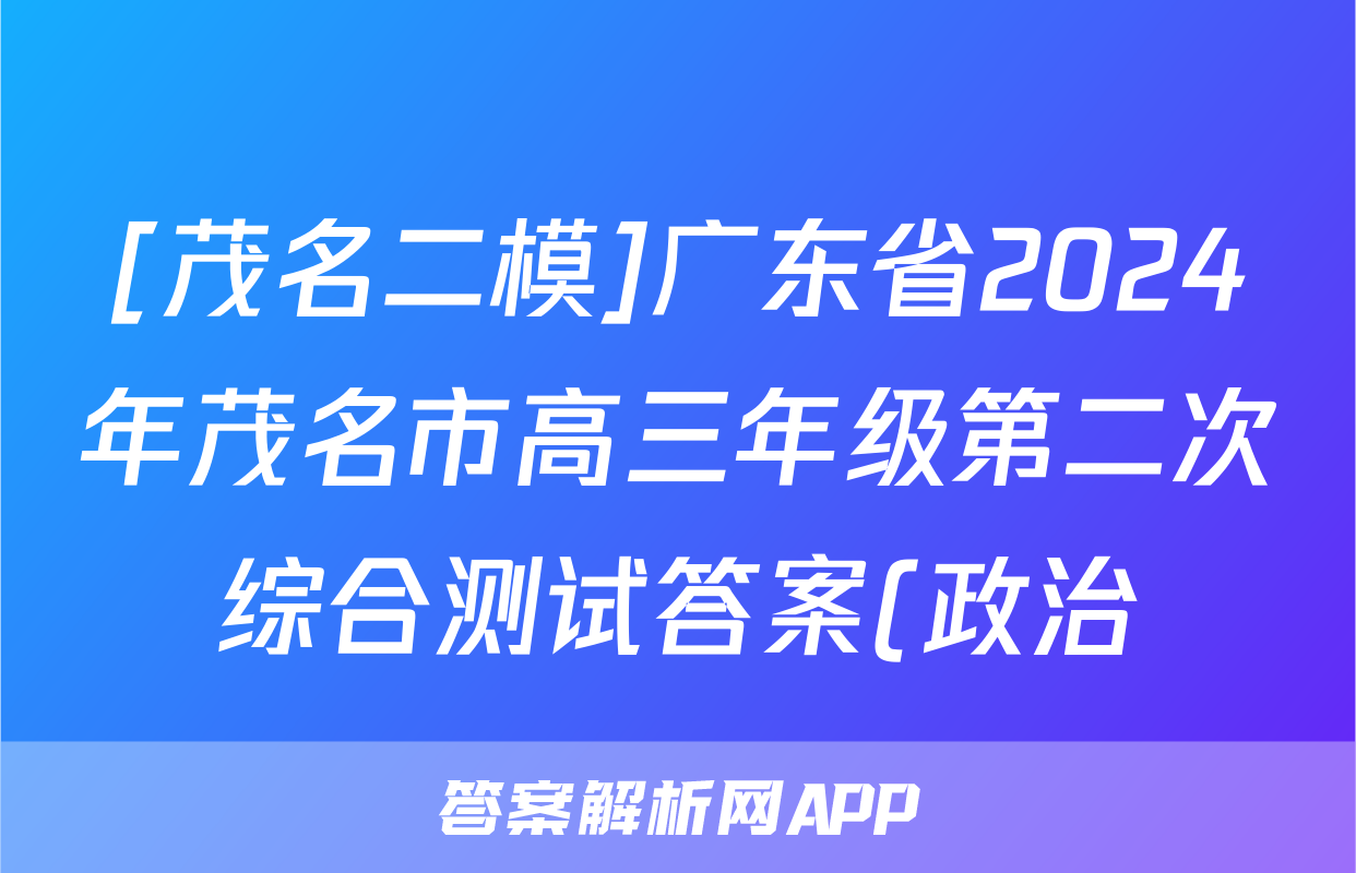 [茂名二模]广东省2024年茂名市高三年级第二次综合测试答案(政治)正在持续更新,目前2026届黄冈八模答案网为大家整理了相关试题及答案,供大家查缺补漏,高效提升成绩。