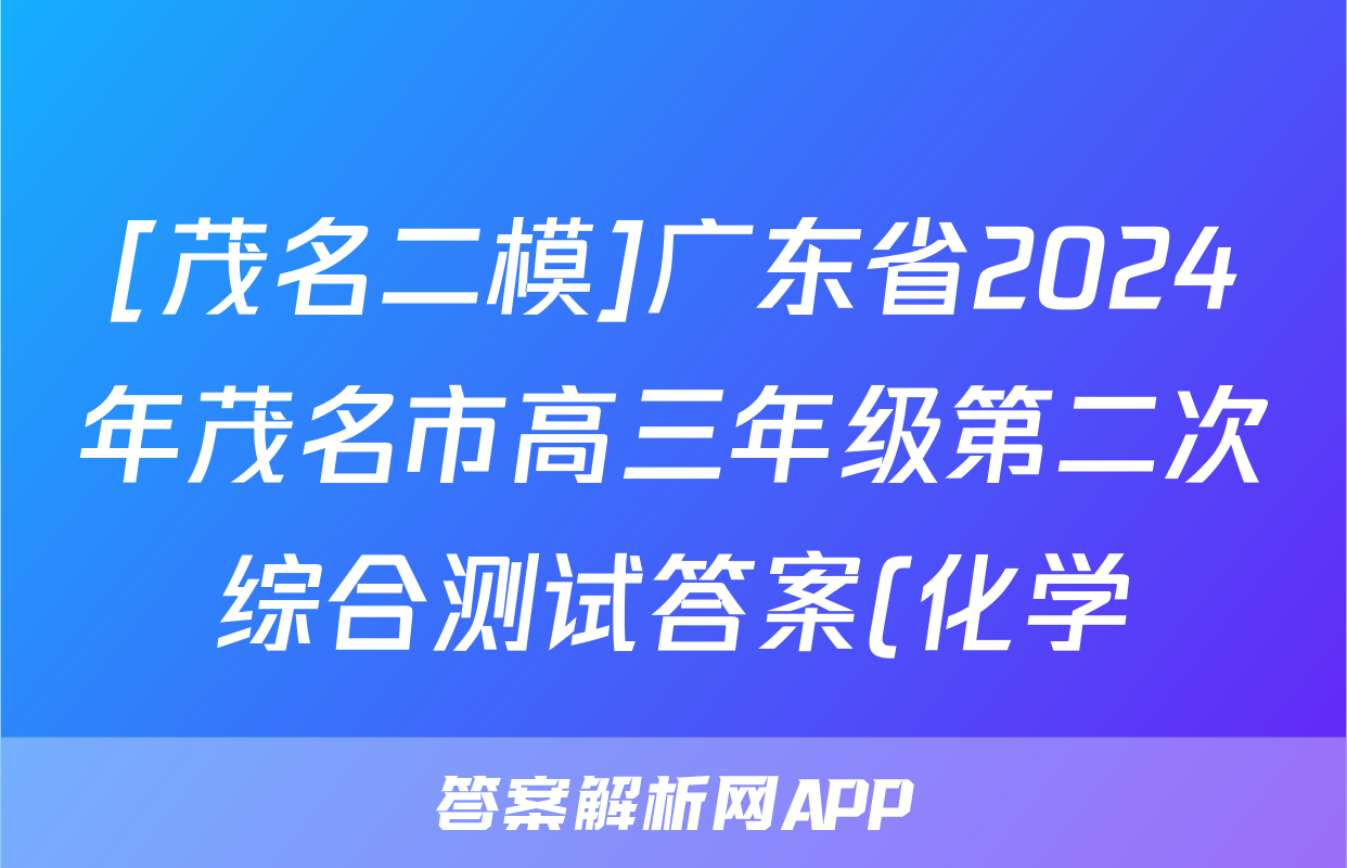 [茂名二模]广东省2024年茂名市高三年级第二次综合测试答案(化学)正在持续更新,目前2026届黄冈八模答案网为大家整理了相关试题及答案,供大家查缺补漏,高效提升成绩。