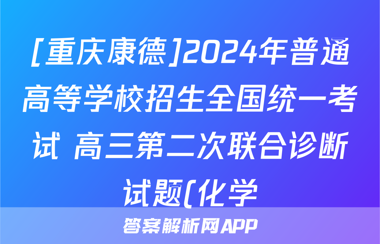 [重庆康德]2024年普通高等学校招生全国统一考试 高三第二次联合诊断试题(化学)正在持续更新,目前2026届黄冈八模答案网为大家整理了相关试题及答案,供大家查缺补漏,高效提升成绩。