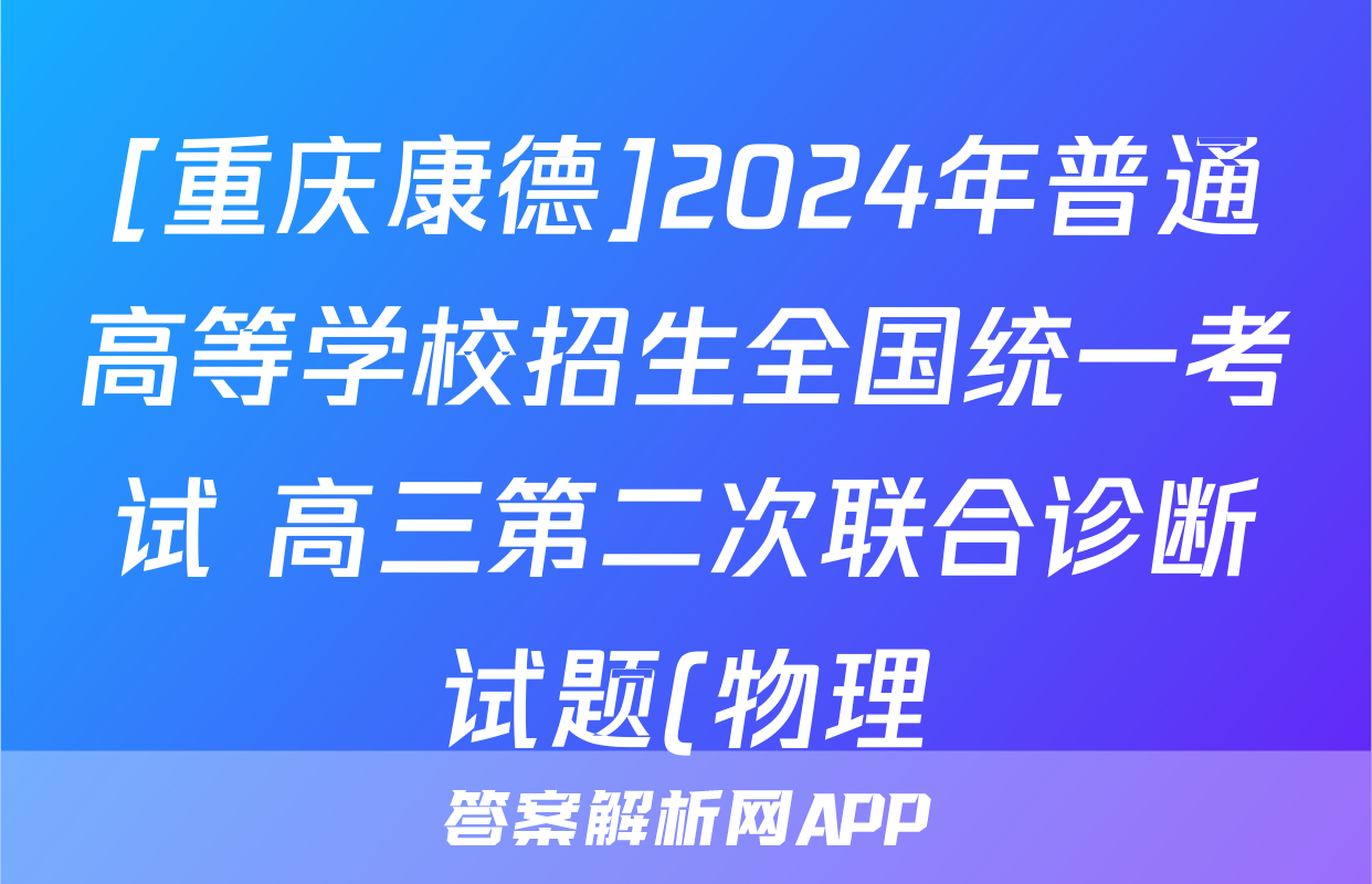 [重庆康德]2024年普通高等学校招生全国统一考试 高三第二次联合诊断试题(物理)正在持续更新,目前2026届黄冈八模答案网为大家整理了相关试题及答案,供大家查缺补漏,高效提升成绩。