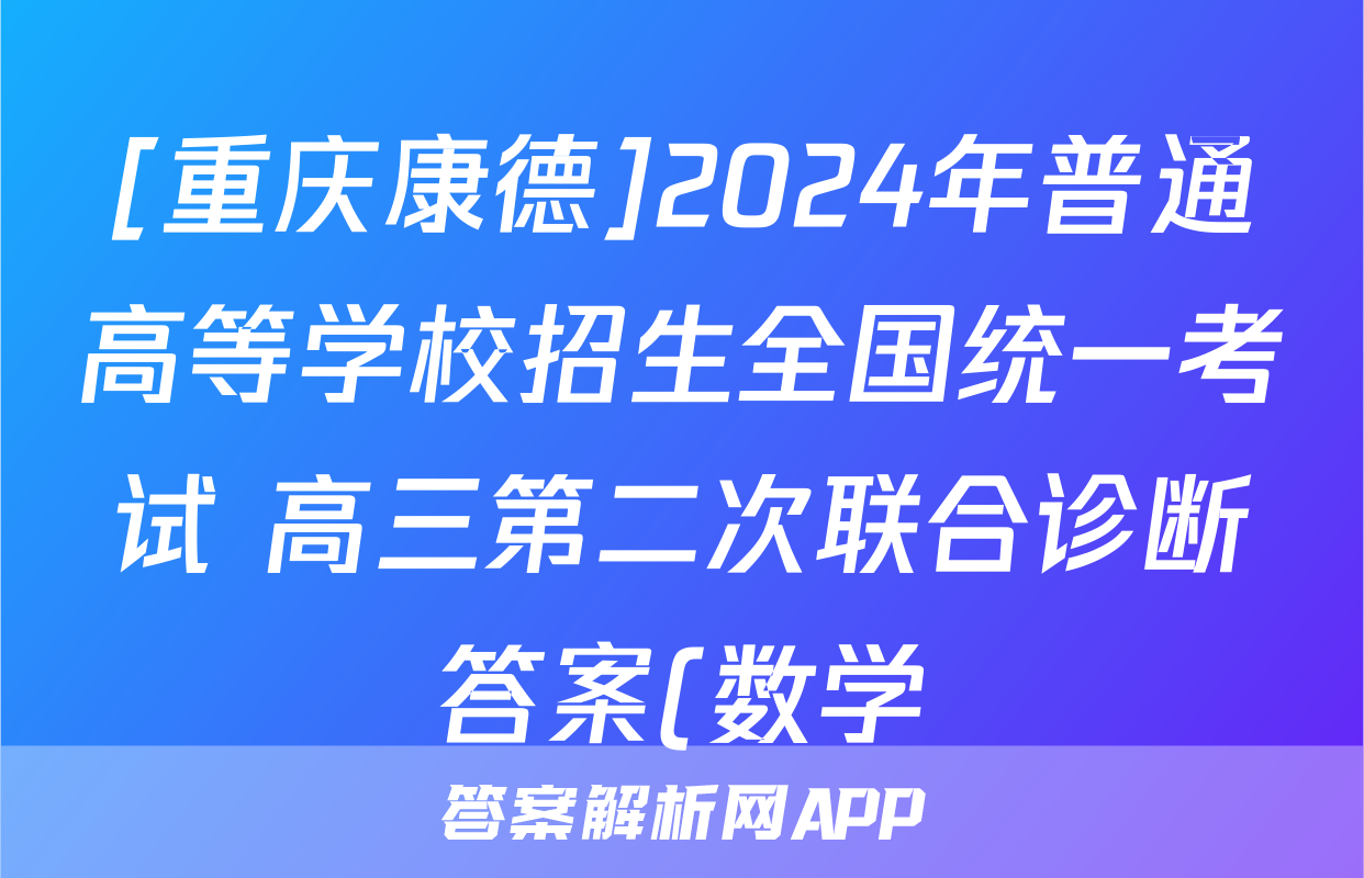 [重庆康德]2024年普通高等学校招生全国统一考试 高三第二次联合诊断答案(数学)正在持续更新,目前2026届黄冈八模答案网为大家整理了相关试题及答案,供大家查缺补漏,高效提升成绩。