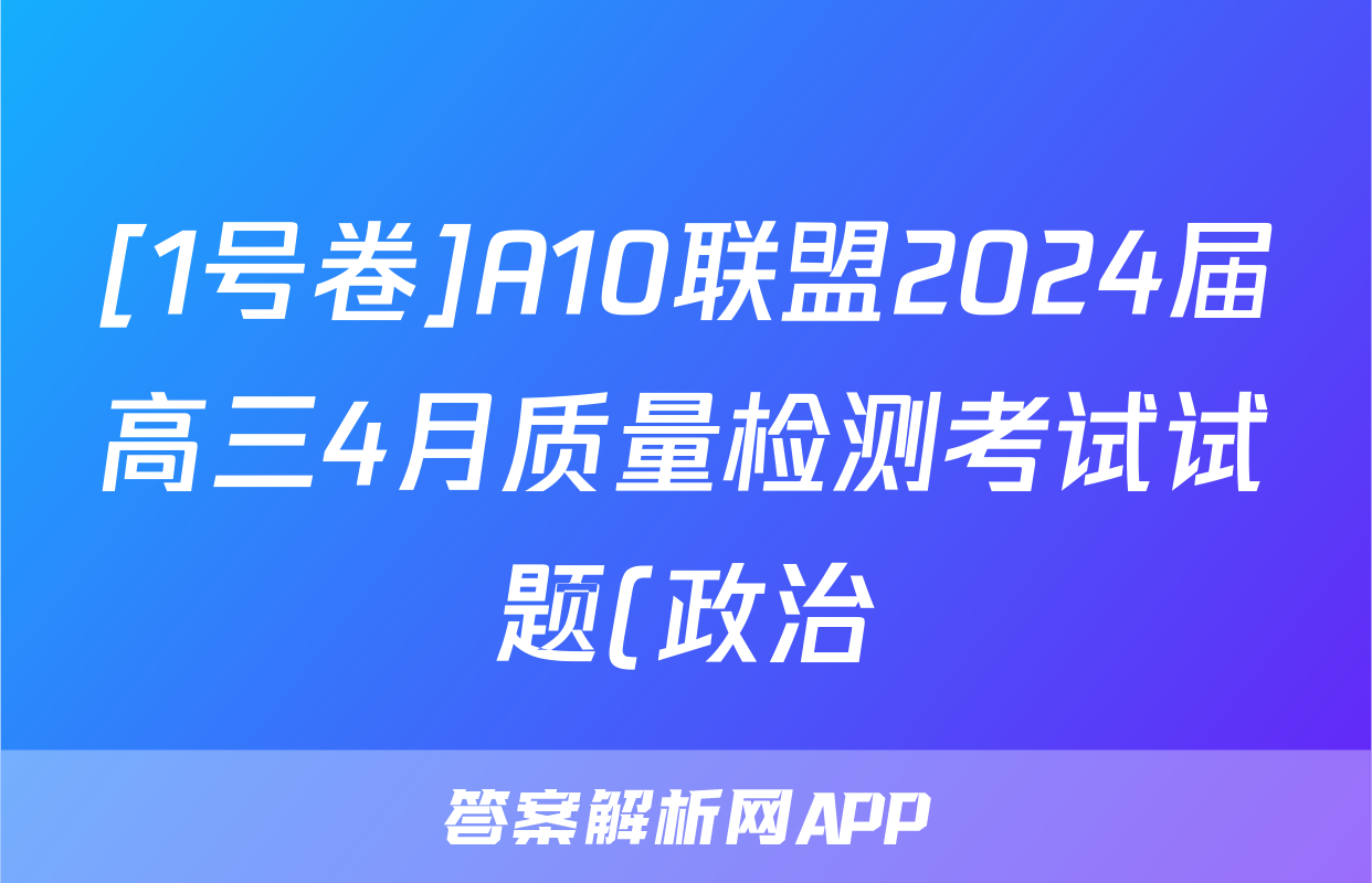 [1号卷]A10联盟2024届高三4月质量检测考试试题(政治)正在持续更新,目前2026届黄冈八模答案网为大家整理了相关试题及答案,供大家查缺补漏,高效提升成绩。