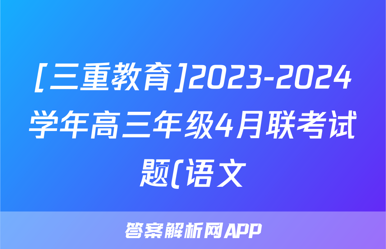 [三重教育]2023-2024学年高三年级4月联考试题(语文)正在持续更新,目前2026届黄冈八模答案网为大家整理了相关试题及答案,供大家查缺补漏,高效提升成绩。