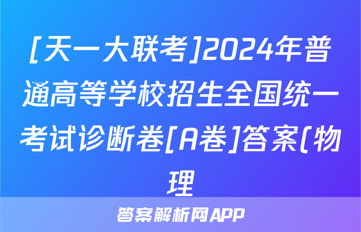 [天一大联考]2024年普通高等学校招生全国统一考试诊断卷[A卷]答案(物理)正在持续更新,目前2026届黄冈八模答案网为大家整理了相关试题及答案,供大家查缺补漏,高效提升成绩。