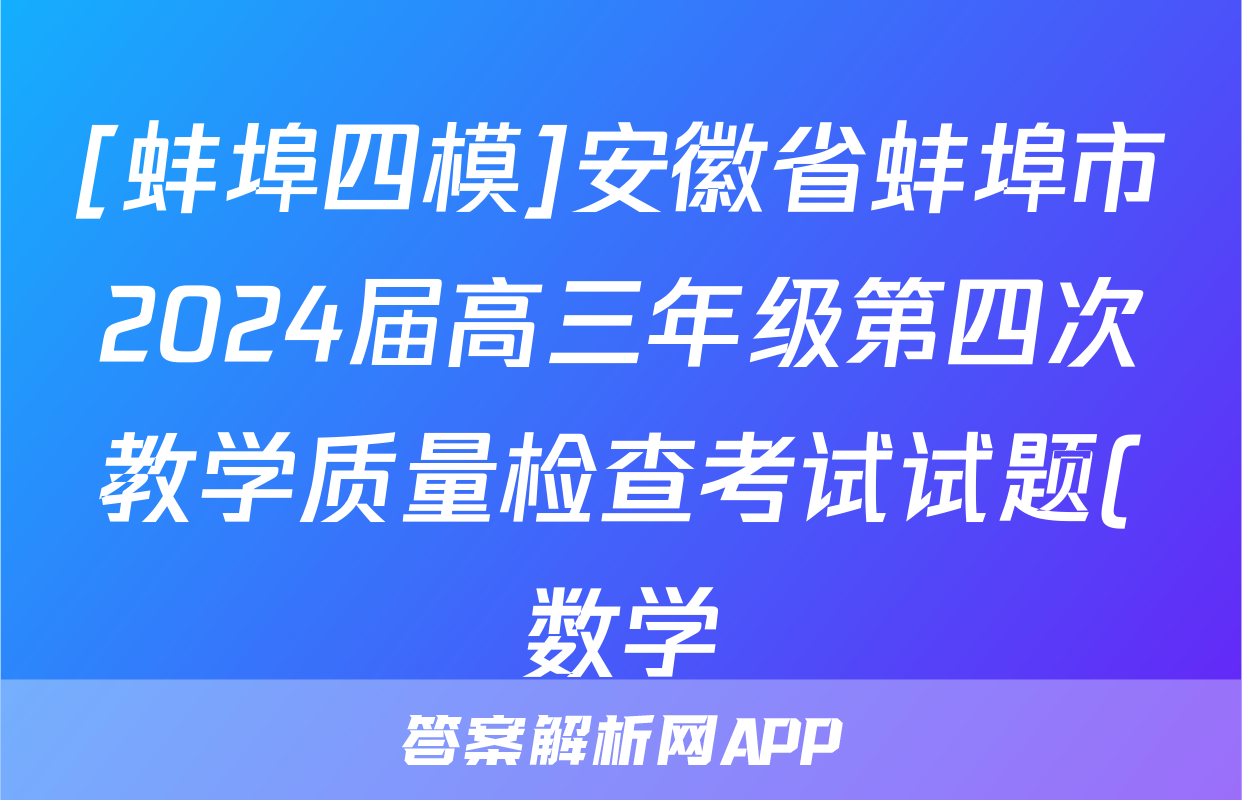 [蚌埠四模]安徽省蚌埠市2024届高三年级第四次教学质量检查考试试题(数学)正在持续更新,目前2026届黄冈八模答案网为大家整理了相关试题及答案,供大家查缺补漏,高效提升成绩。