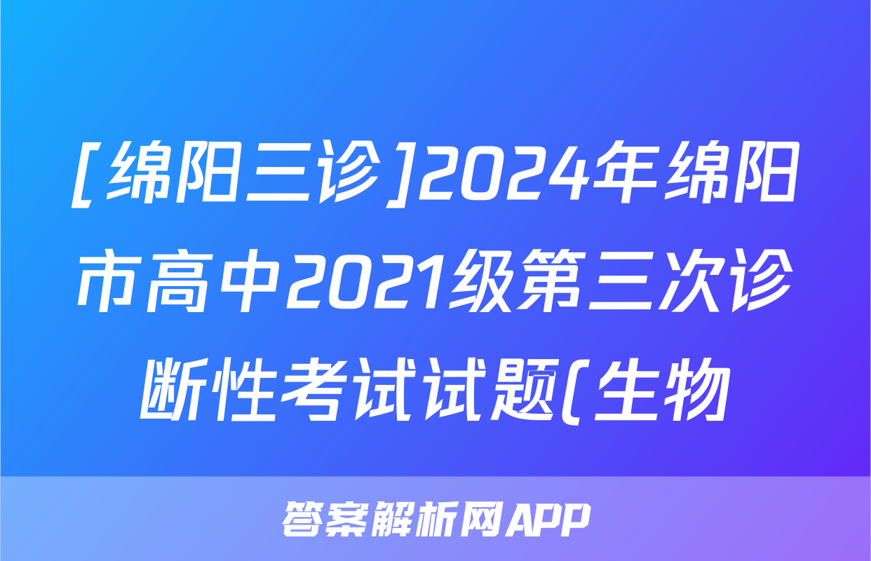 [绵阳三诊]2024年绵阳市高中2021级第三次诊断性考试试题(生物)正在持续更新,目前2026届黄冈八模答案网为大家整理了相关试题及答案,供大家查缺补漏,高效提升成绩。