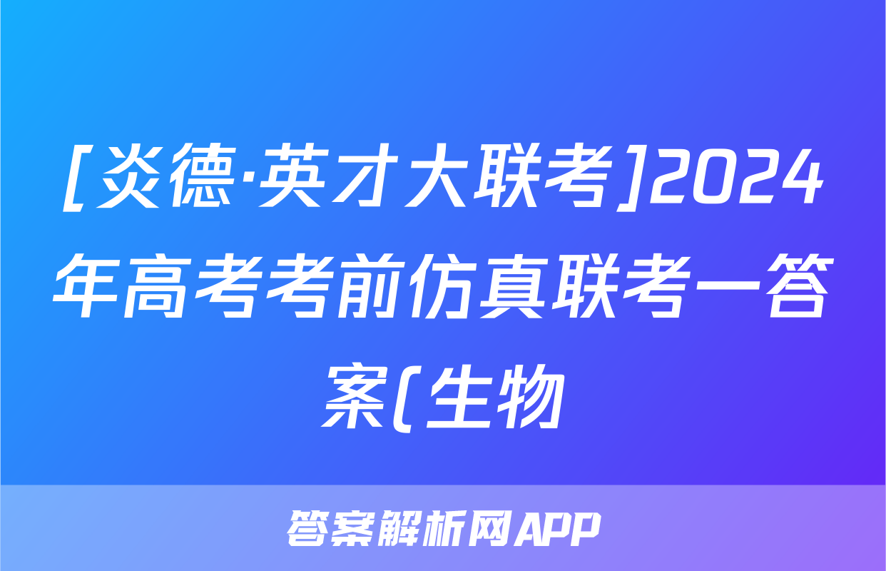 [炎德·英才大联考]2024年高考考前仿真联考一答案(生物)正在持续更新,目前2026届黄冈八模答案网为大家整理了相关试题及答案,供大家查缺补漏,高效提升成绩。